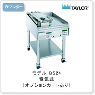 電気式フラットグリルです。調理時間を短縮するため、ファーストフード店などで幅広く使用されているクラムシェルタイプ(上下から両面同時に焼成/オプション)もあります。ガス式のような配管設備も必要なく、安全に使用できます。